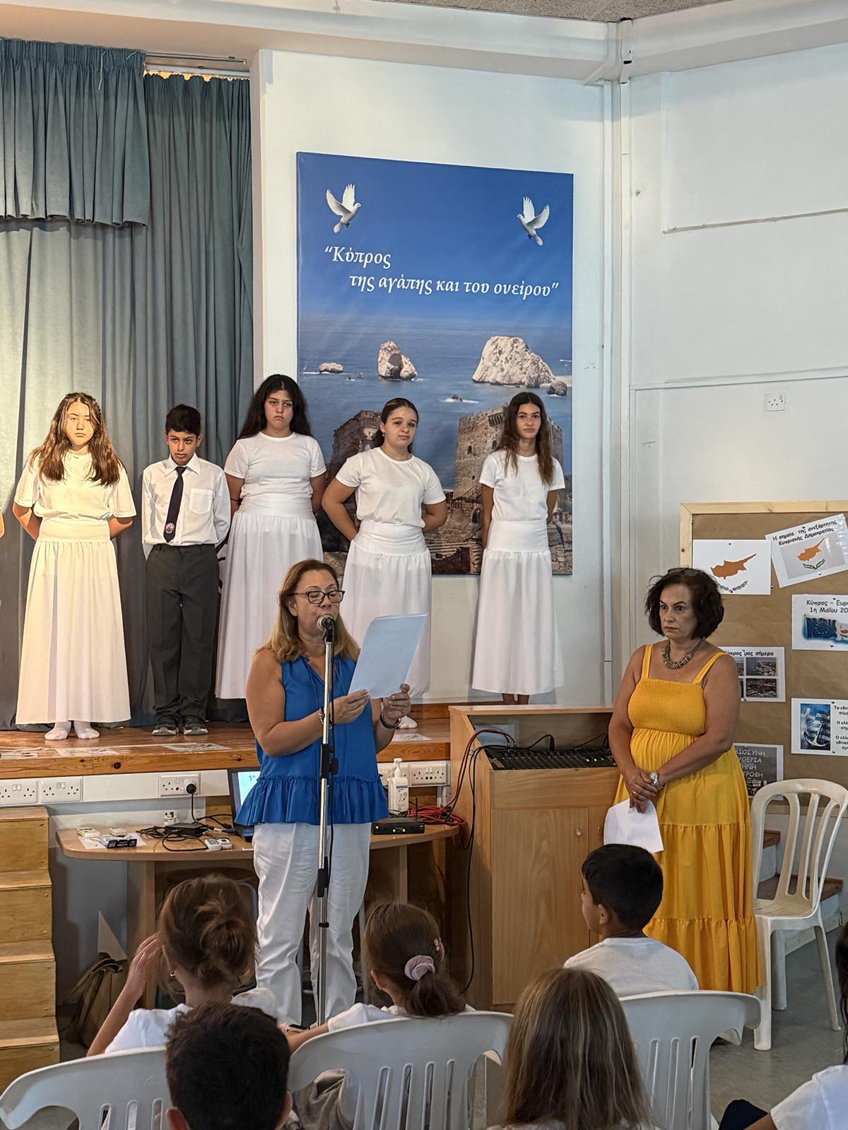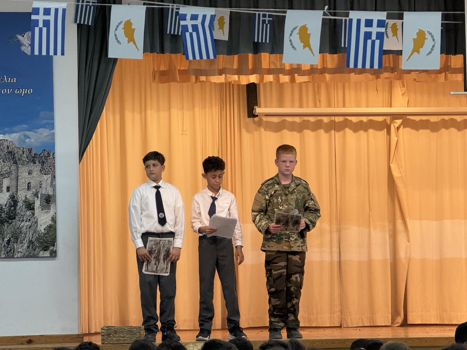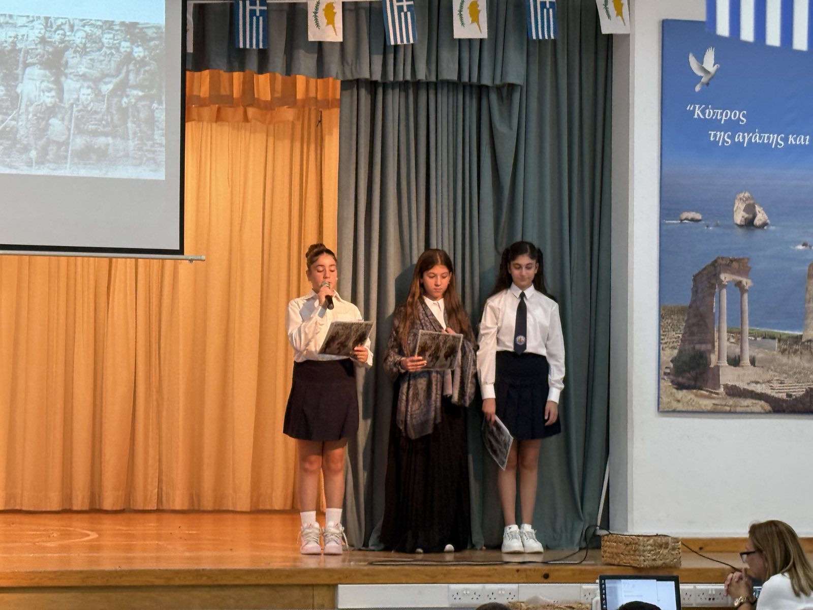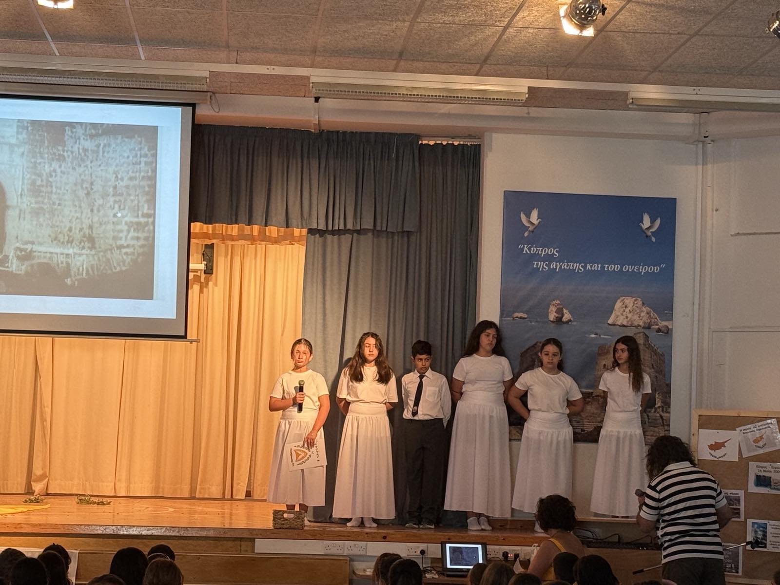 Τη Δευτέρα, 29 Σεπτεμβρίου, πραγματοποιήθηκε στο σχολείο μας εκδήλωση για τον εορτασμό της Ανακήρυξης της Κυπριακής Δημοκρατίας. Την εκδήλωση παρουσίασαν οι μαθητές της Στ΄1 τάξης. Η παρουσίαση περιελάμβανε, ιστορική διαδρομή μέχρι την Ανεξαρτησία της Κύπρου με απαγγελίες, τραγούδια και πολύ όμορφα χορευτικά. Η εκδήλωση συγκίνησε όλο το ακρωατήριο.