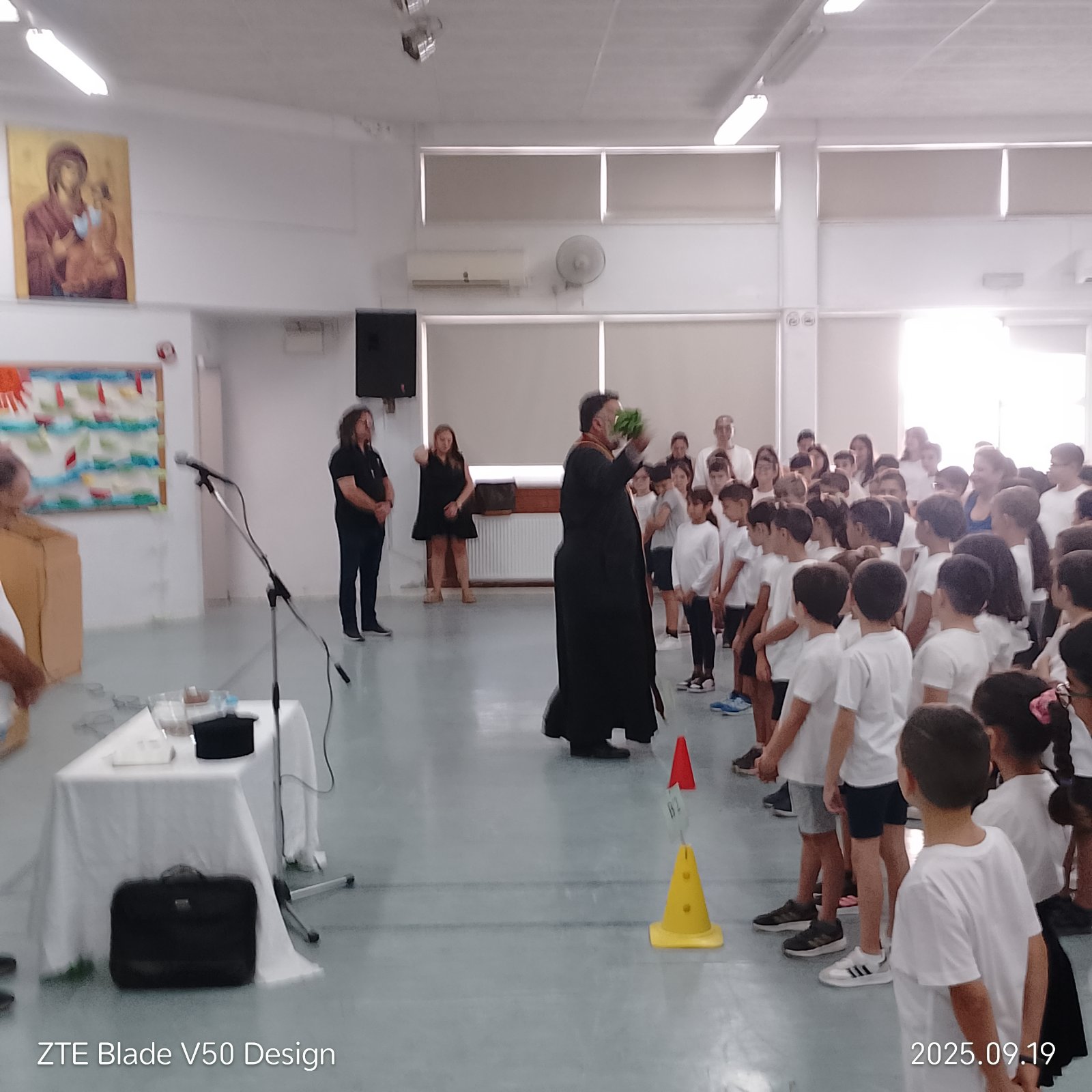 Την Παρασκευή,19 Σεπτεμβρίου 2025, πραγματοποιήθηκε αγιασμός στο σχολείο μας από τον ιερέα του ιερού Ναού Αγίας Χρυσαϊφυλιώτισσας, πάτερ Ανδρέα, στην παρουσία των παιδιών και των εκπαιδευτικών του σχολείου μας. Ευχές σε όλους και κυρίως στα παιδιά, για μια γόνιμη και εποικοδομητική σχολική χρονιά!
